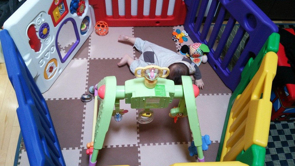 5ヶ月半の時に寝返りが成功した我が子、1ヶ月もたたないうちにずりばいを始め、放っておくと部屋の至る所を目指してずりずりしだすように。